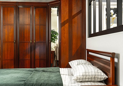 Заказали спальню Адажио 1.1 по индивидуальным размерам. Точно в таком же составе, но по своим меркам. Цвет темный, нам очень понравился его благородный оттенок и уже оценили уютную атмосферу, которую новая мебель привнесла в спальню. Все детали тщательно продуманны и прорисованы, очень приятны глазу. Все удобно и очень вместительно. Оценили и зеркало в угловом шкафу, которое не видно со стороны кровати и оно не мешает, но при одевании всегда под рукой. Заказ ждали 3 месяца, но результатом полностью довольны.